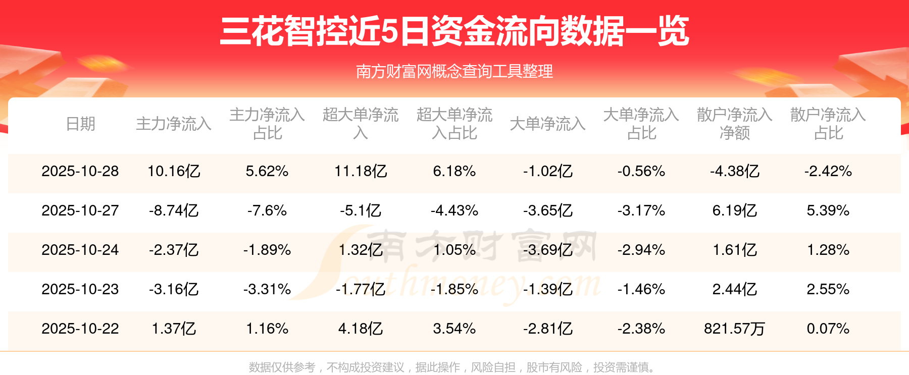 资金流向数据方面,10月28日主力资金净流流入10.16亿元,超大单资金净流入11.18亿元,大单资金净流出1.02亿元,散户资金净流出4.38亿元。