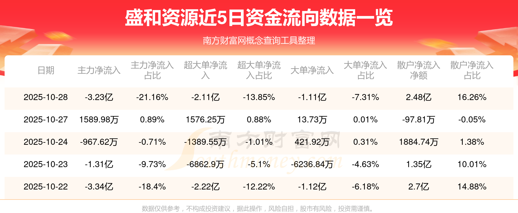 10月28日消息,盛和资源资金净流出3.23亿元,超大单资金净流出2.11亿元,换手率3.74%,成交金额15.05亿元。
