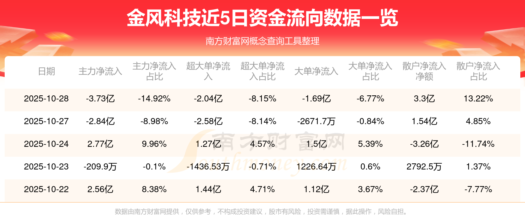 10月28日消息,金风科技10月28日主力资金净流出3.73亿元,超大单资金净流出2.04亿元,大单资金净流出1.69亿元,散户资金净流入3.3亿元。