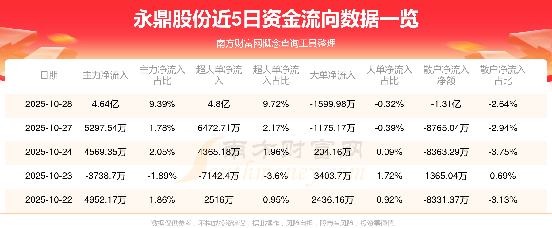 10月28日该股主力资金净流入4.64亿元,超大单资金净流入4.8亿元,大单资金净流出1599.98万元,中单资金净流出3.34亿元,散户资金净流出1.31亿元。