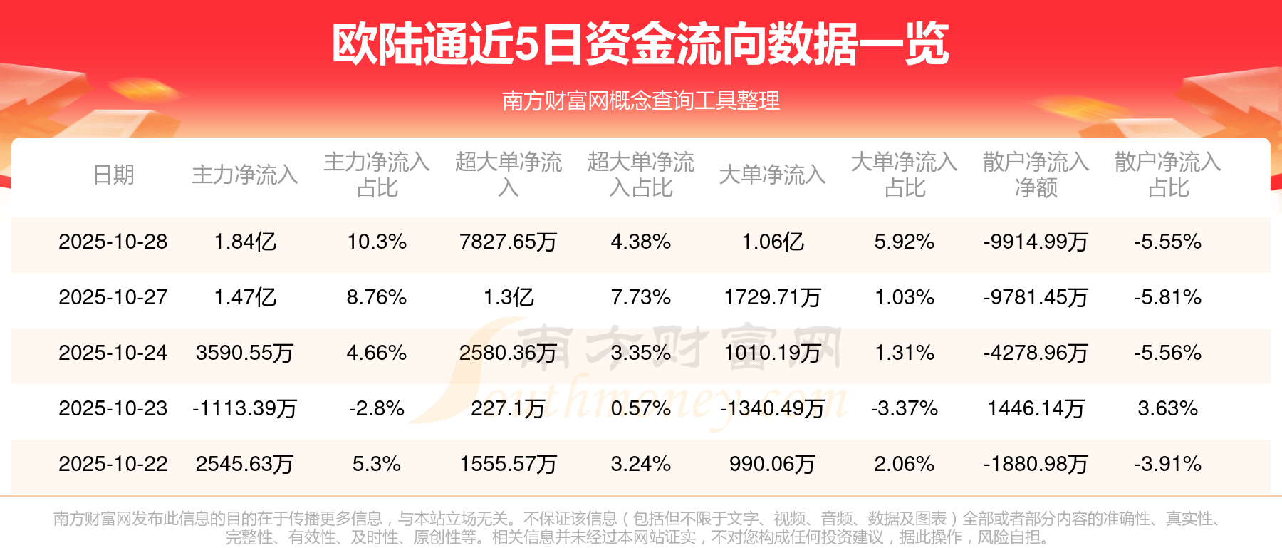 资金流向数据方面,10月28日主力资金净流流入1.84亿元,超大单资金净流入7827.65万元,大单资金净流入1.06亿元,散户资金净流出9914.99万元。