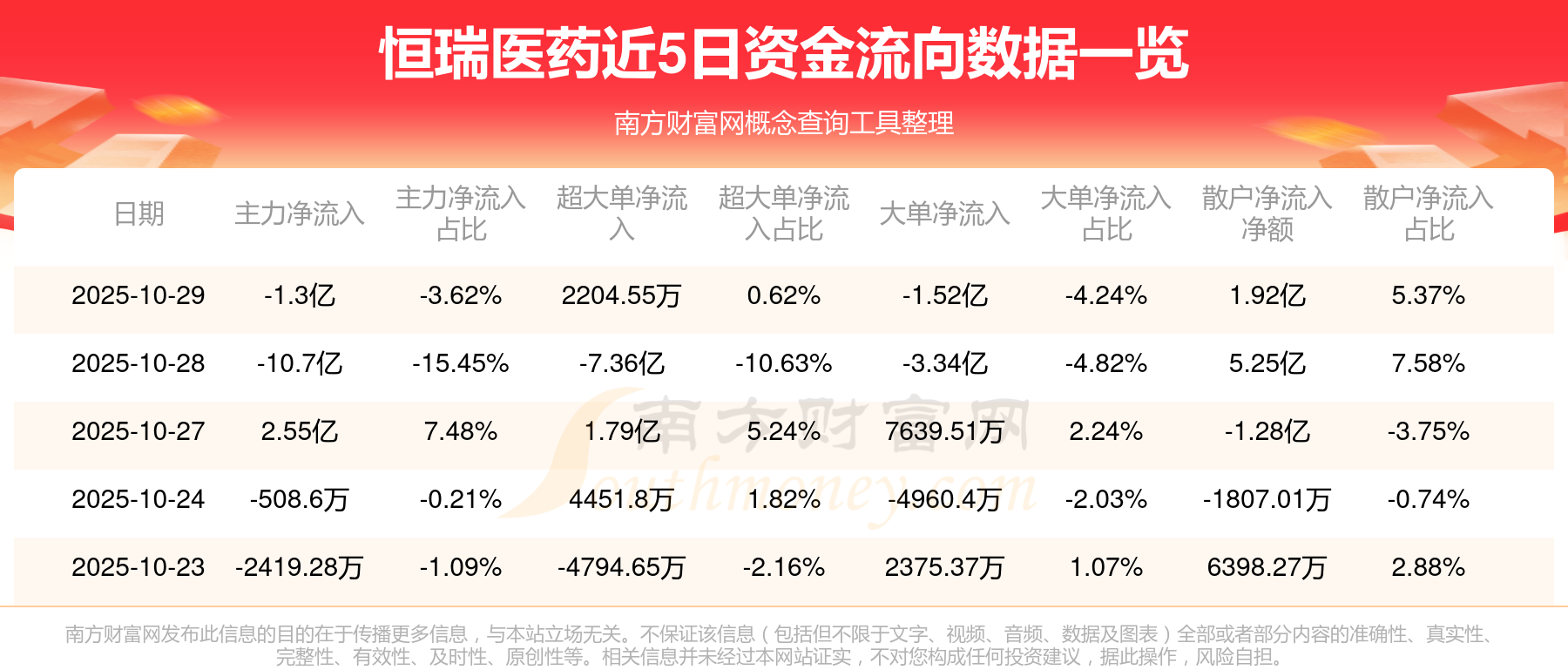 资金流向数据方面,10月29日主力资金净流流出1.3亿元,超大单资金净流入2204.55万元,大单资金净流出1.52亿元,散户资金净流入1.92亿元。