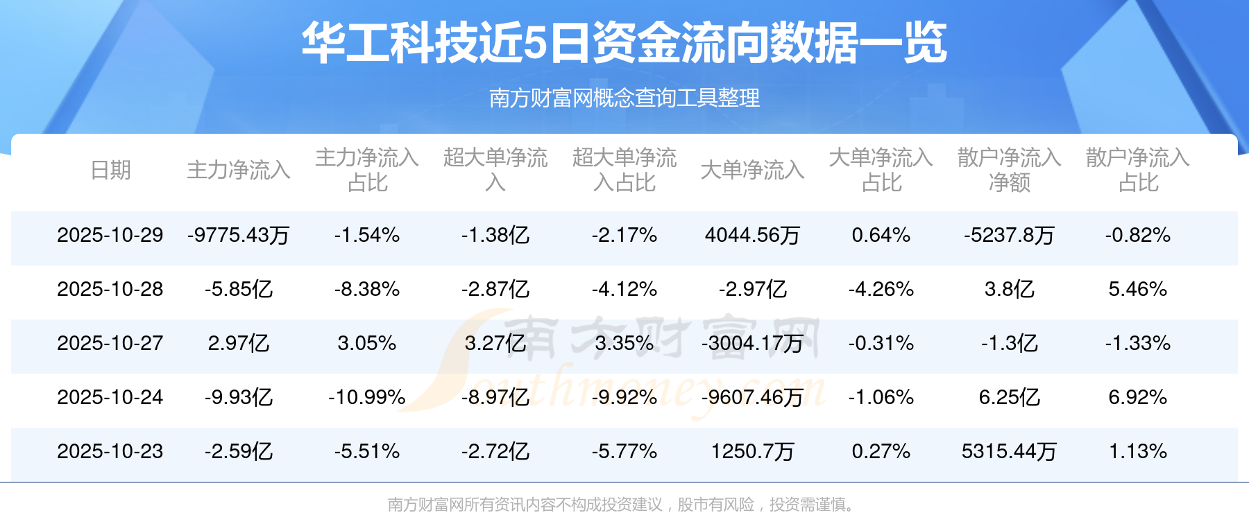 10月29日消息,华工科技资金净流出9775.43万元,超大单资金净流出1.38亿元,换手率7.21%,成交金额63.58亿元。