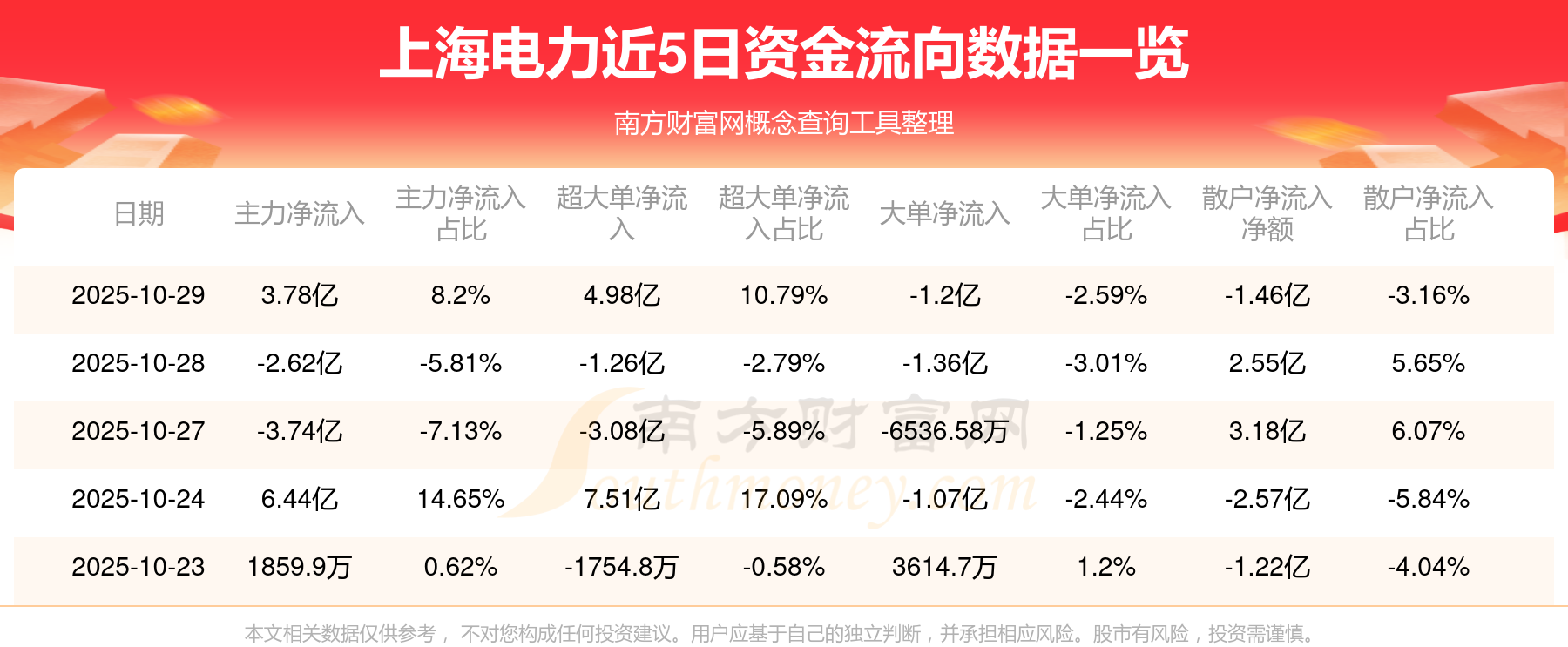10月29日该股主力净入3.78亿元,其中资金流入方面:超大单净入14.55亿元,大单净入11.93亿元,中单净入10.81亿元,散户净入8.6亿元;资金流出方面:超大单净出9.57亿元,大单净出13.13亿元,中单净出13.13亿元,散户净出10.06亿元。