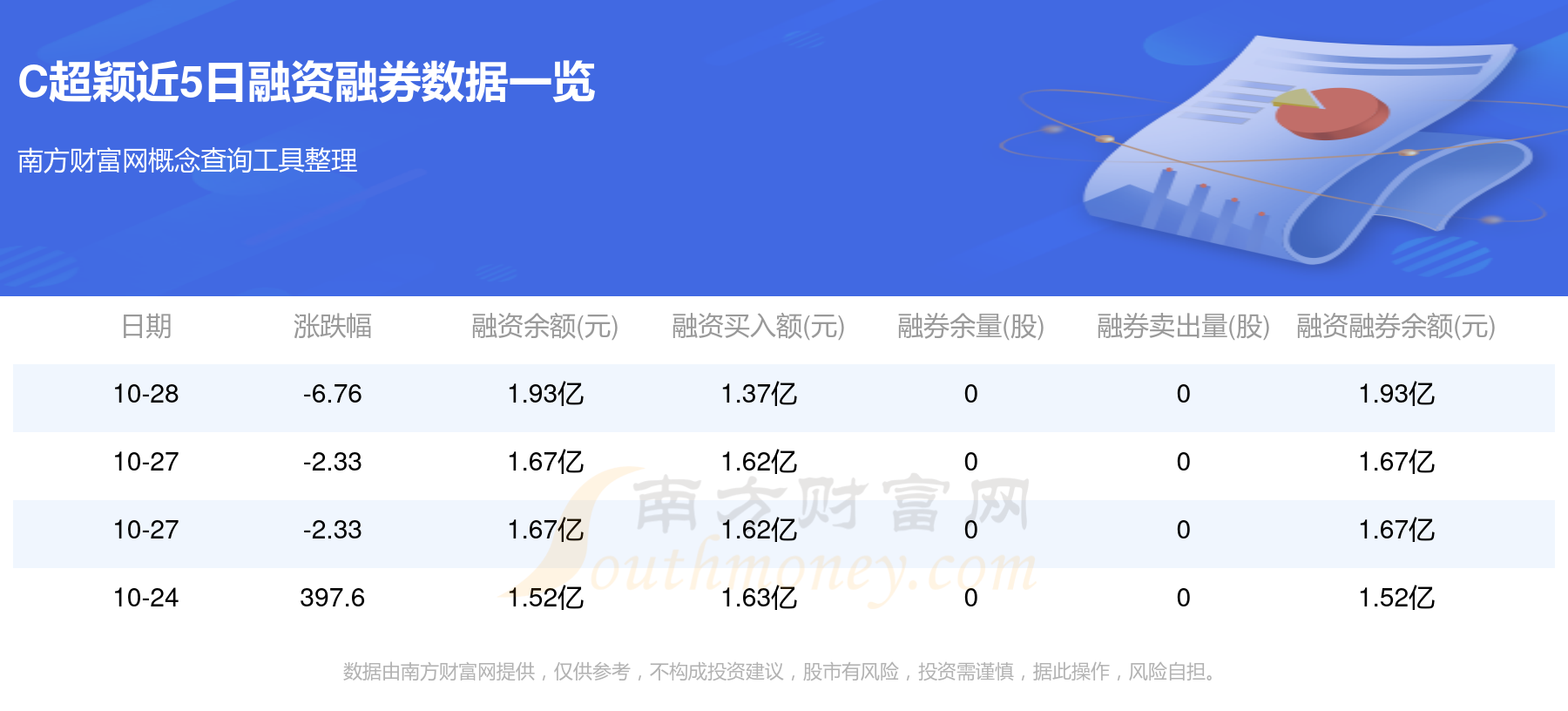 10月28日C超颖融券信息显示,融资方面,当日融资买入1.37亿元,融资偿还1.11亿元,融资净买额2587.83万元。近5日融资融券数据一览见下表: