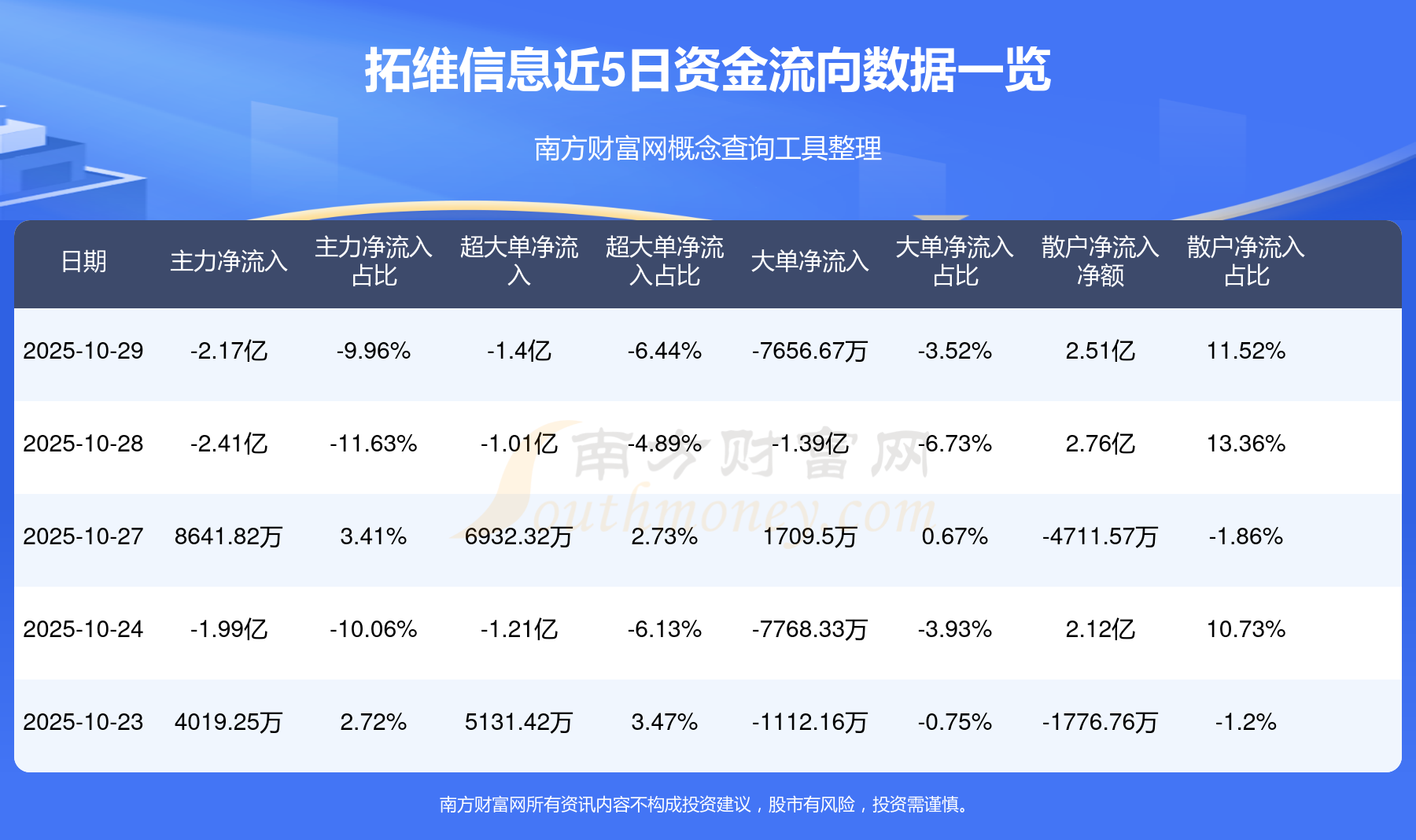 10月29日消息,拓维信息资金净流出2.17亿元,超大单资金净流出1.4亿元,换手率5.53%,成交金额21.77亿元。