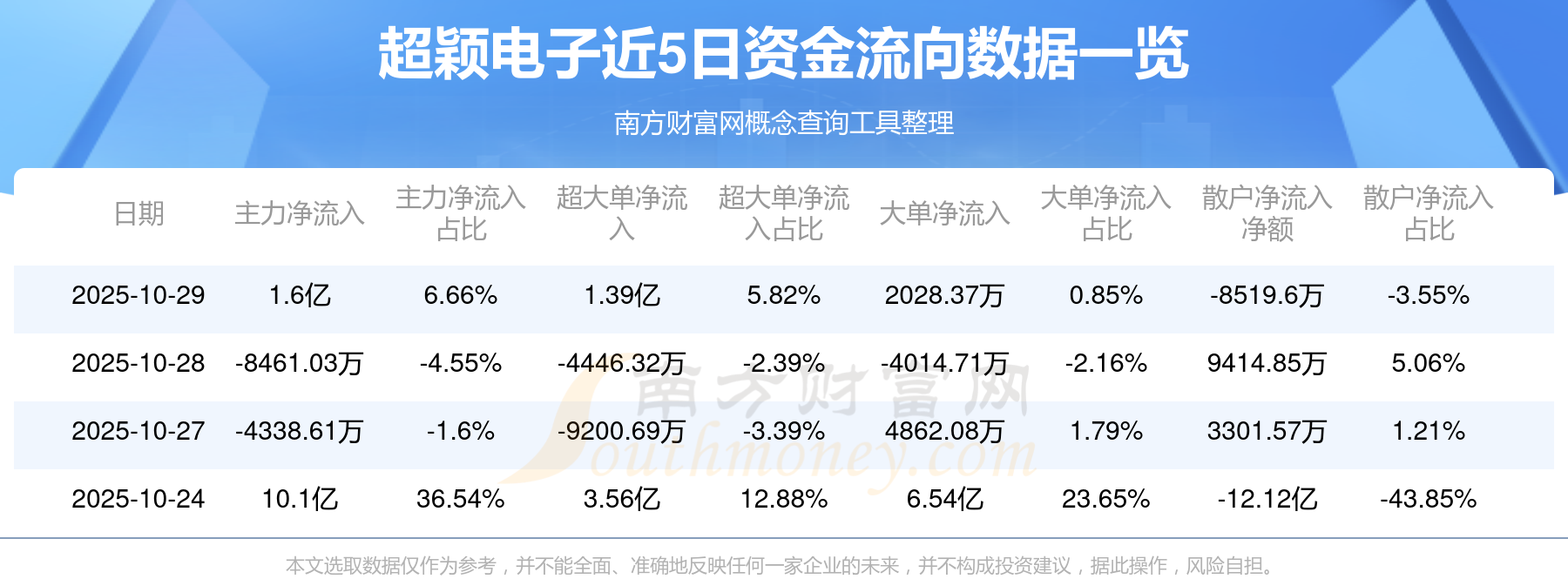10月29日该股主力资金净流入1.6亿元,超大单资金净流入1.39亿元,大单资金净流入2028.37万元,中单资金净流出7458.16万元,散户资金净流出8519.6万元。