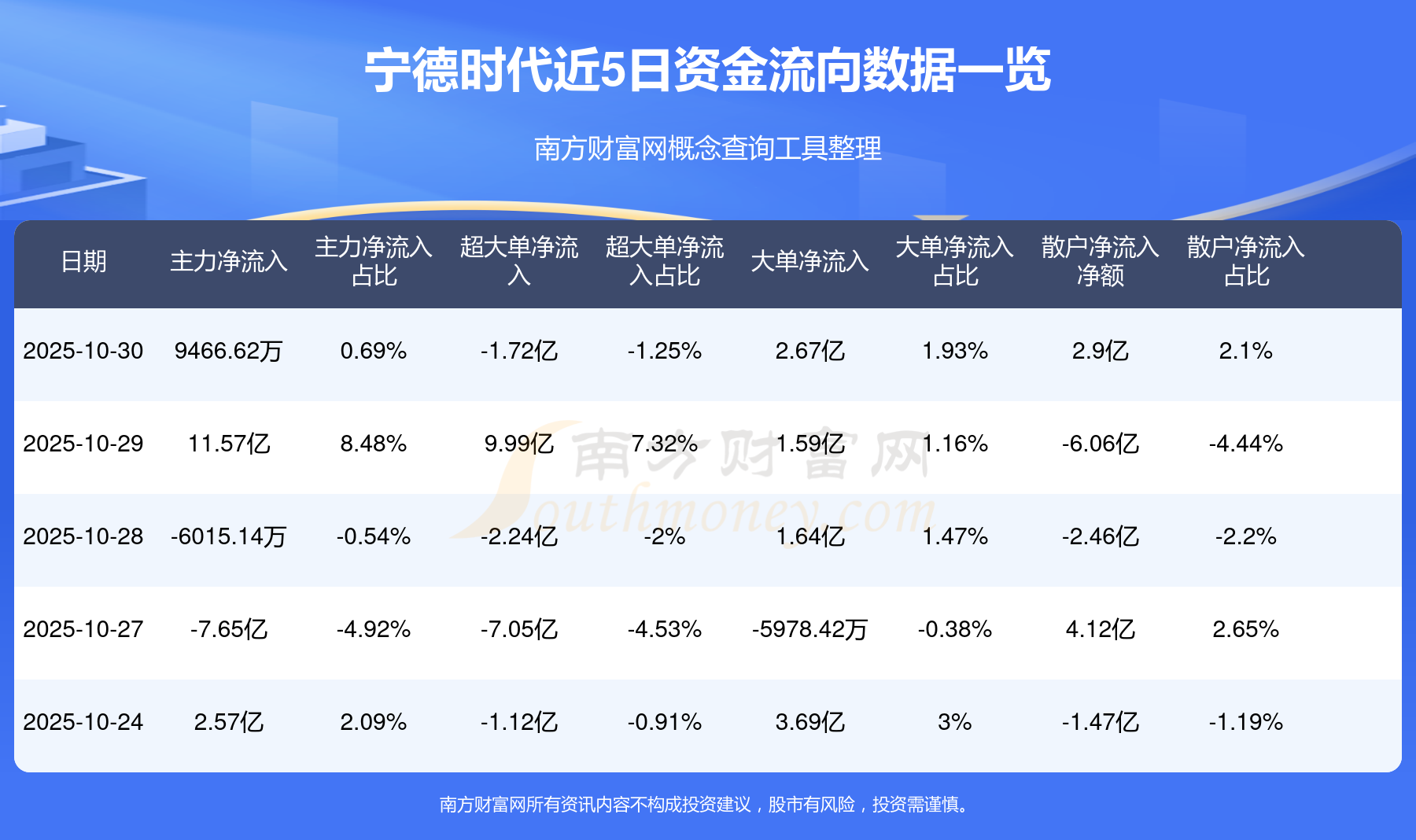 资金流向数据方面,10月30日主力资金净流流入9466.62万元,超大单资金净流出1.72亿元,大单资金净流入2.67亿元,散户资金净流入2.9亿元。