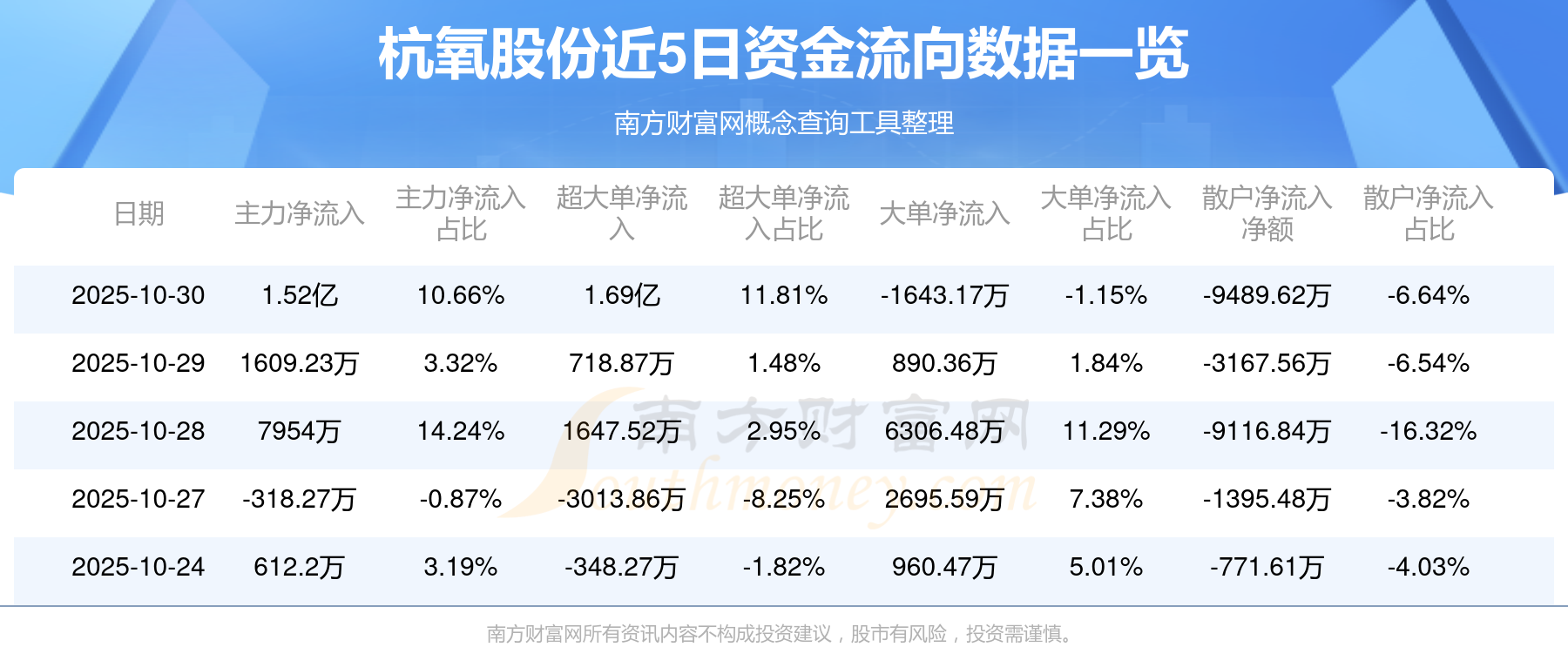 10月30日该股主力净流入1.52亿元,超大单净流入1.69亿元,大单净流出1643.17万元,中单净流出5748.67万元,散户净流出9489.62万元。