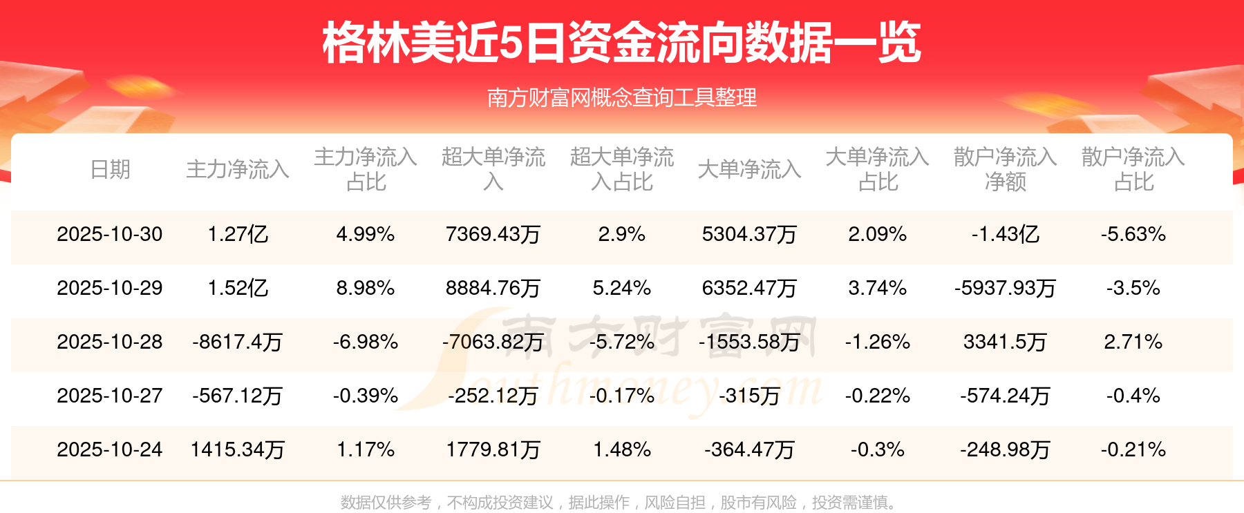 10月30日该股主力资金净流入1.27亿元,超大单资金净流入7369.43万元,大单资金净流入5304.37万元,中单资金净流入1608.05万元,散户资金净流出1.43亿元。