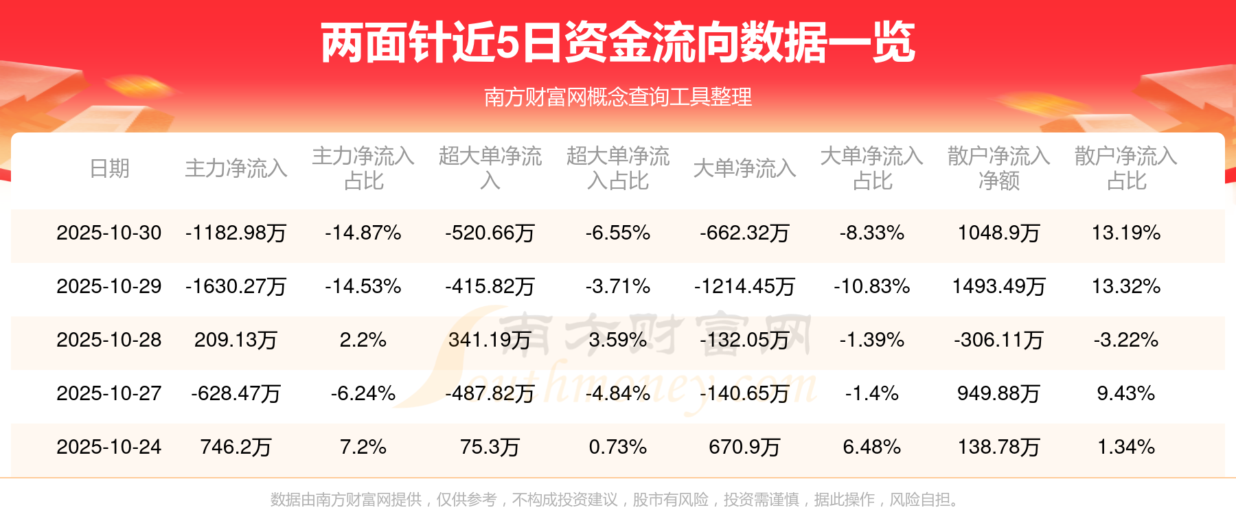 10月30日消息,两面针主力资金净流出1182.98万元,超大单资金净流出520.66万元,散户资金净流入1048.9万元。