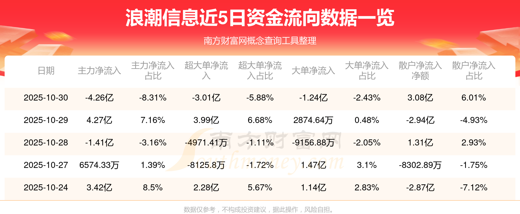 10月30日消息,浪潮信息10月30日主力净流出4.26亿元,超大单净流出3.01亿元,大单净流出1.24亿元,散户净流入3.08亿元。