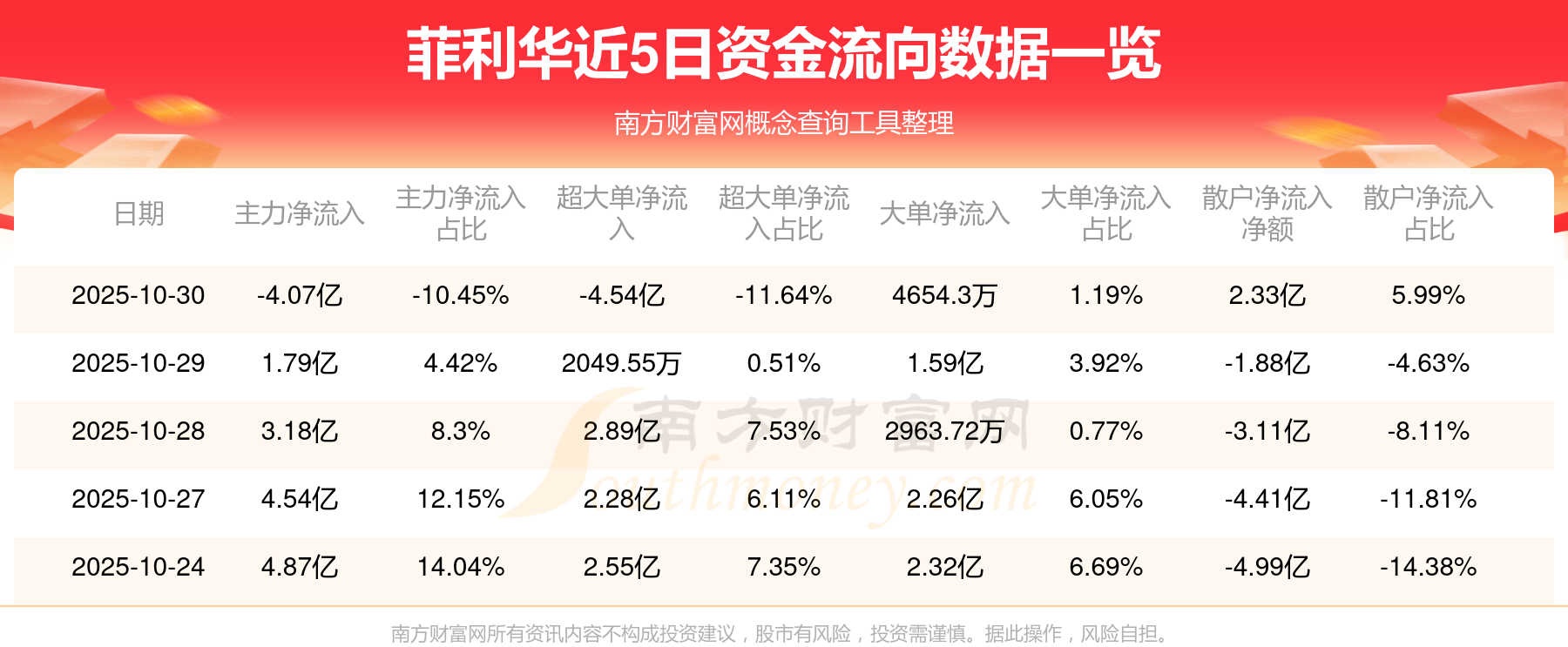 10月30日该股主力资金净流出4.07亿元,超大单资金净流出4.54亿元,大单资金净流入4654.3万元,中单资金净流入1.74亿元,散户资金净流入2.33亿元。