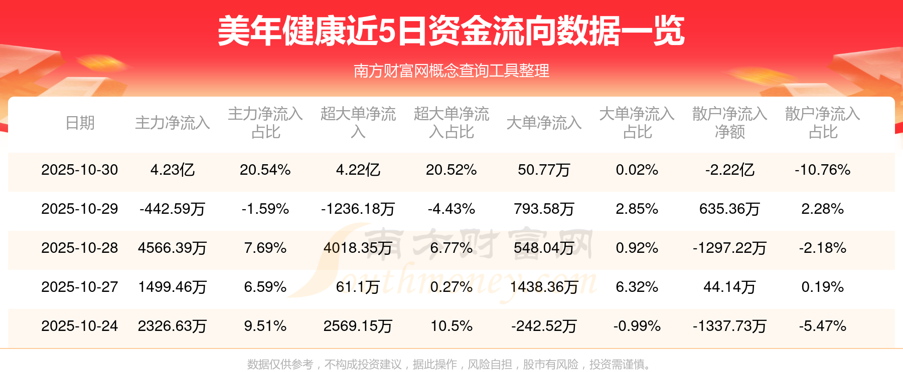 10月30日消息,美年健康资金净流入4.23亿元,超大单净流入4.22亿元,换手率6.01%,成交金额13.16亿元。