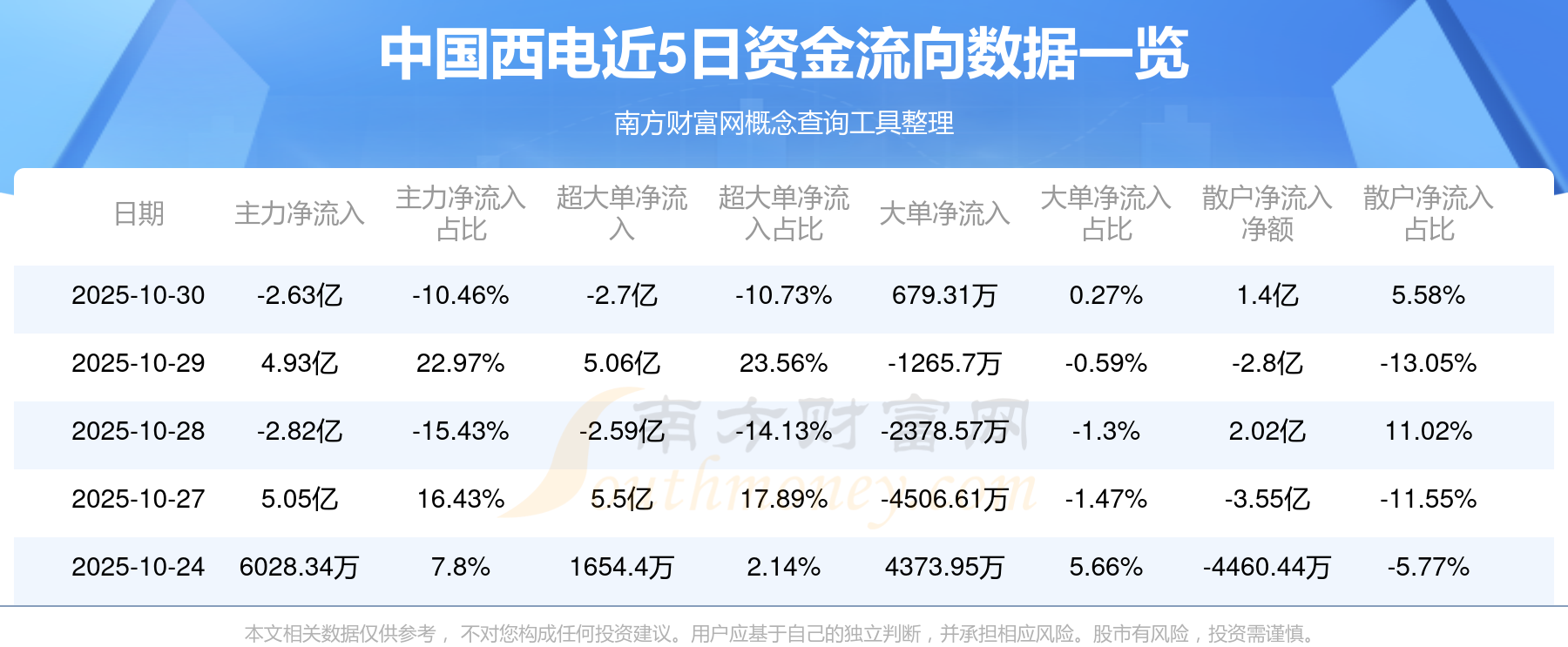 10月30日消息,中国西电资金净流出2.63亿元,超大单净流出2.7亿元,换手率4.15%,成交金额17.14亿元。
