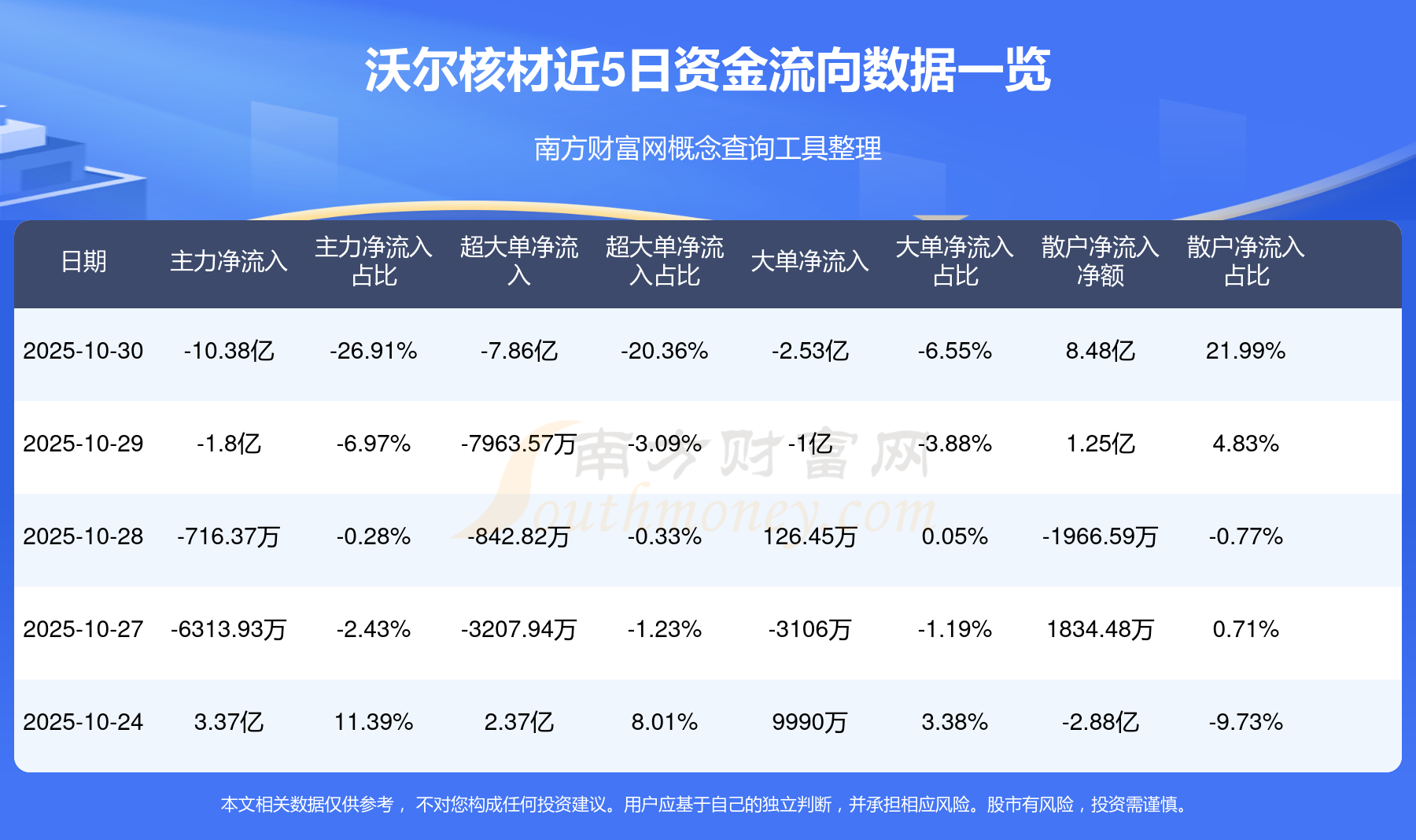 10月30日该股主力资金净流出10.38亿元,超大单资金净流出7.86亿元,大单资金净流出2.53亿元,中单资金净流入1.9亿元,散户资金净流入8.48亿元。