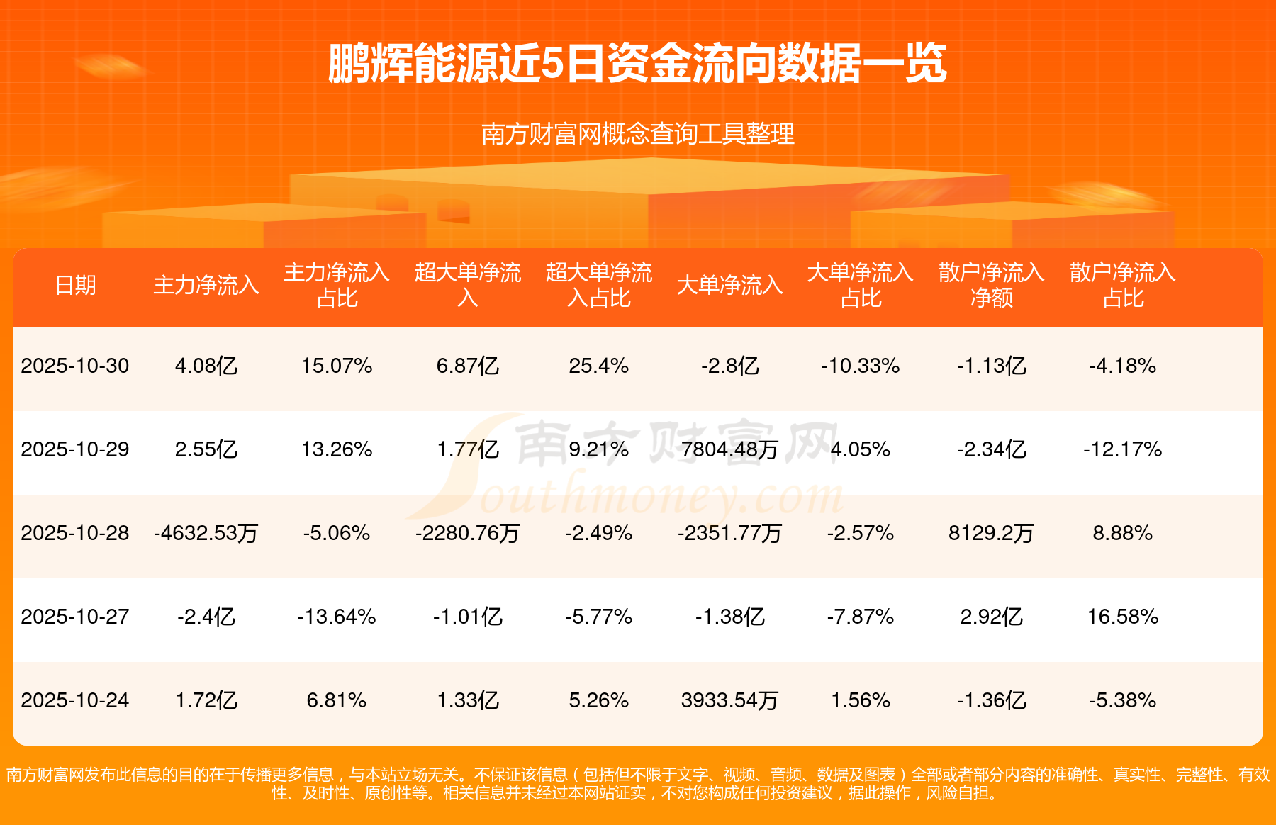10月30日该股主力净流入4.08亿元,超大单净流入6.87亿元,大单净流出2.8亿元,中单净流出2.95亿元,散户净流出1.13亿元。
