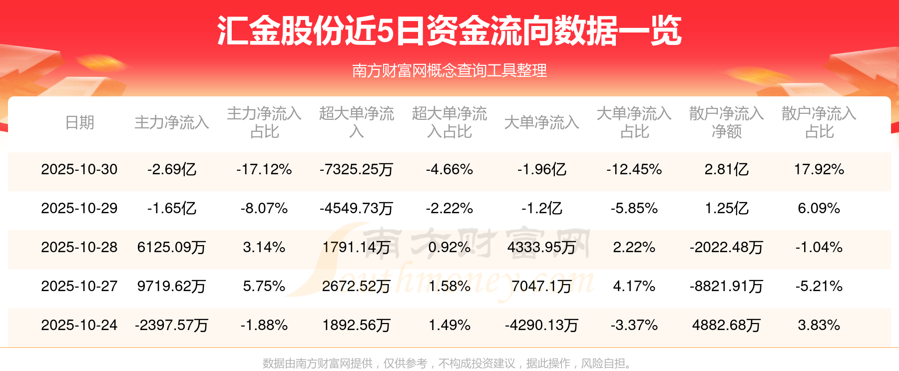 10月30日资金净流出2.69亿元,超大单净流出7325.25万元,换手率7.69%,成交金额7.27亿元。