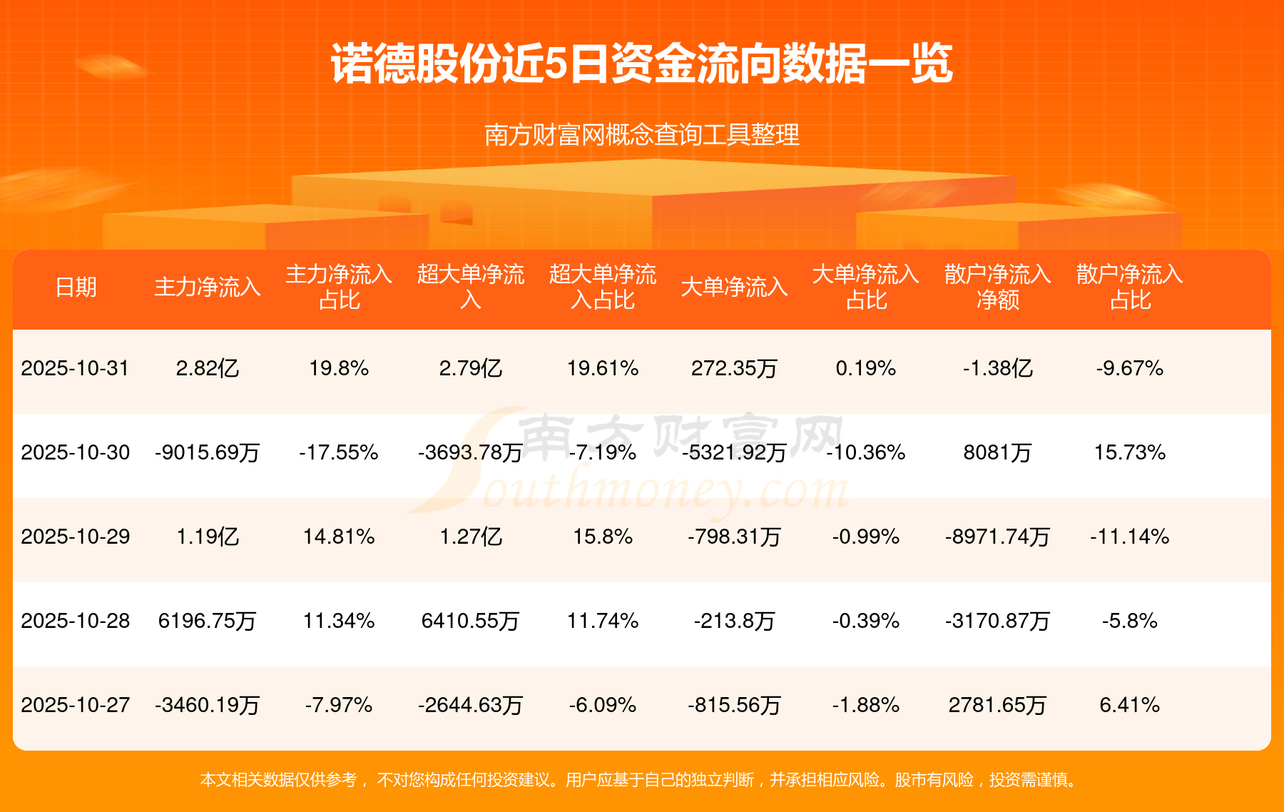 10月31日主力资金净流入2.82亿元,超大单资金净流入2.79亿元,换手率11.27%,成交金额14.16亿元。