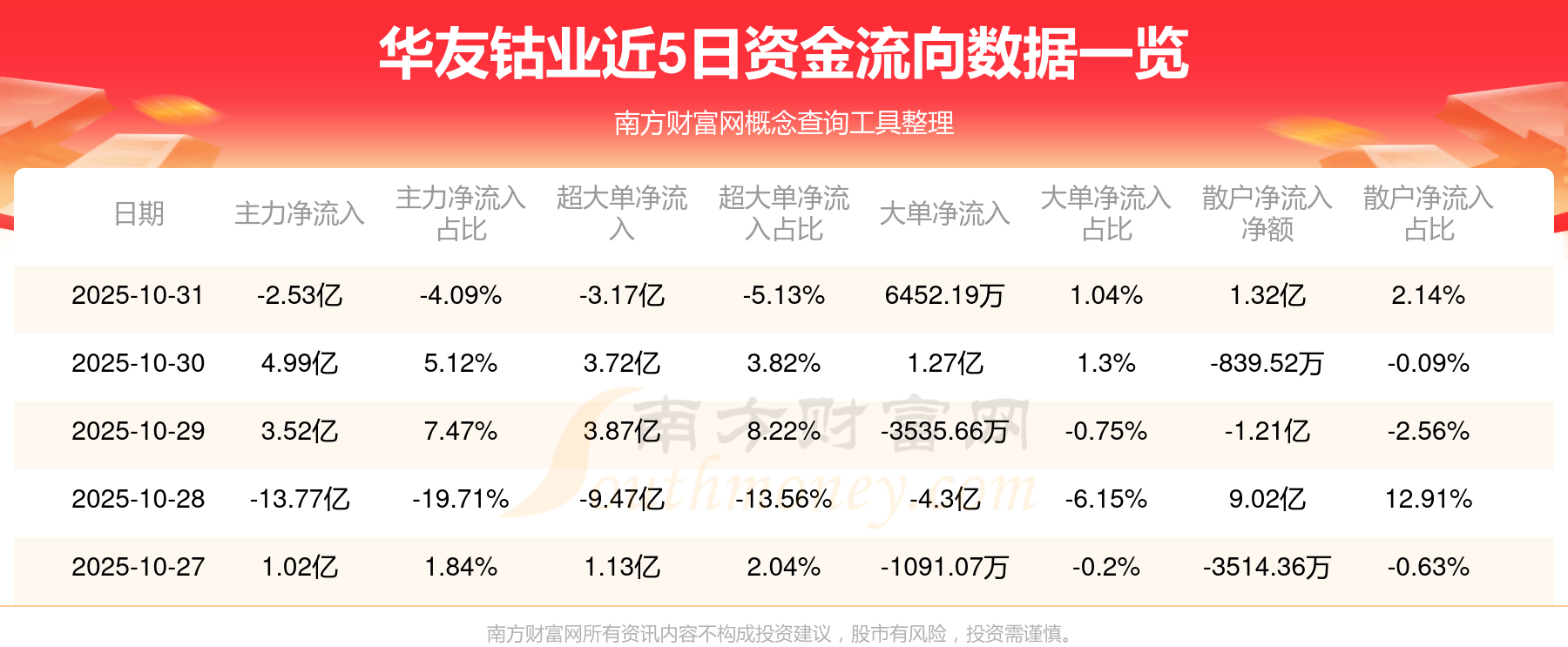 10月31日该股主力资金净流出2.53亿元,超大单资金净流出3.17亿元,大单资金净流入6452.19万元,中单资金净流入1.21亿元,散户资金净流入1.32亿元。
