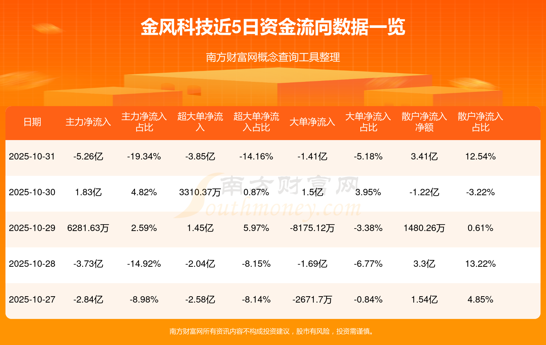 10月31日消息,金风科技主力净流出5.26亿元,超大单净流出3.85亿元,散户净流入3.41亿元。