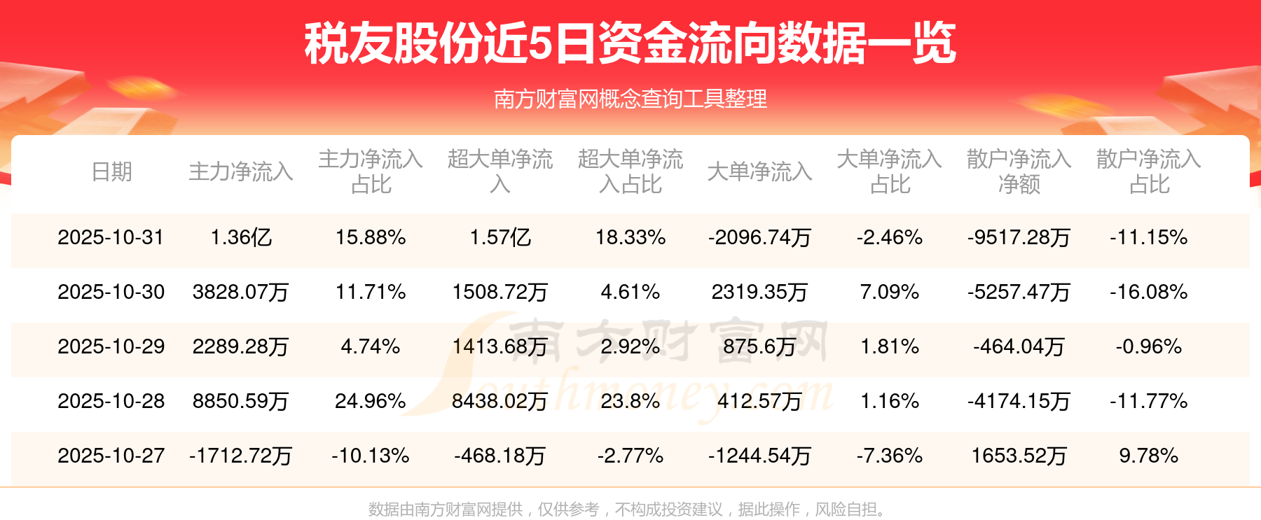 资金流向数据方面,10月31日主力资金净流流入1.36亿元,超大单资金净流入1.57亿元,大单资金净流出2096.74万元,散户资金净流出9517.28万元。
