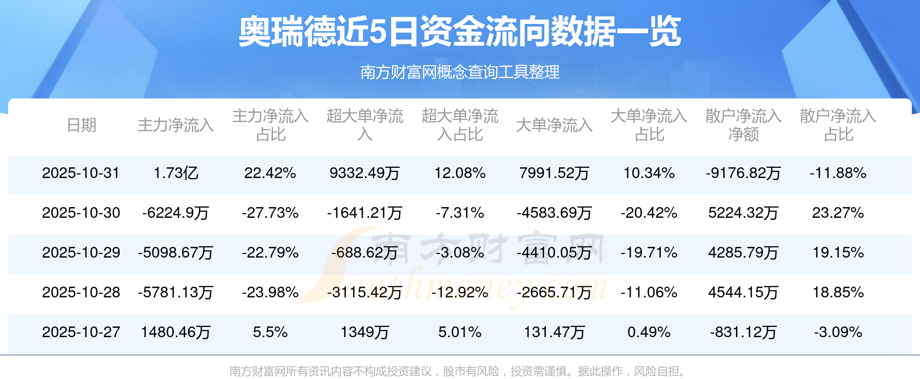 10月31日该股主力净流入1.73亿元,超大单净流入9332.49万元,大单净流入7991.52万元,中单净流出8147.19万元,散户净流出9176.82万元。