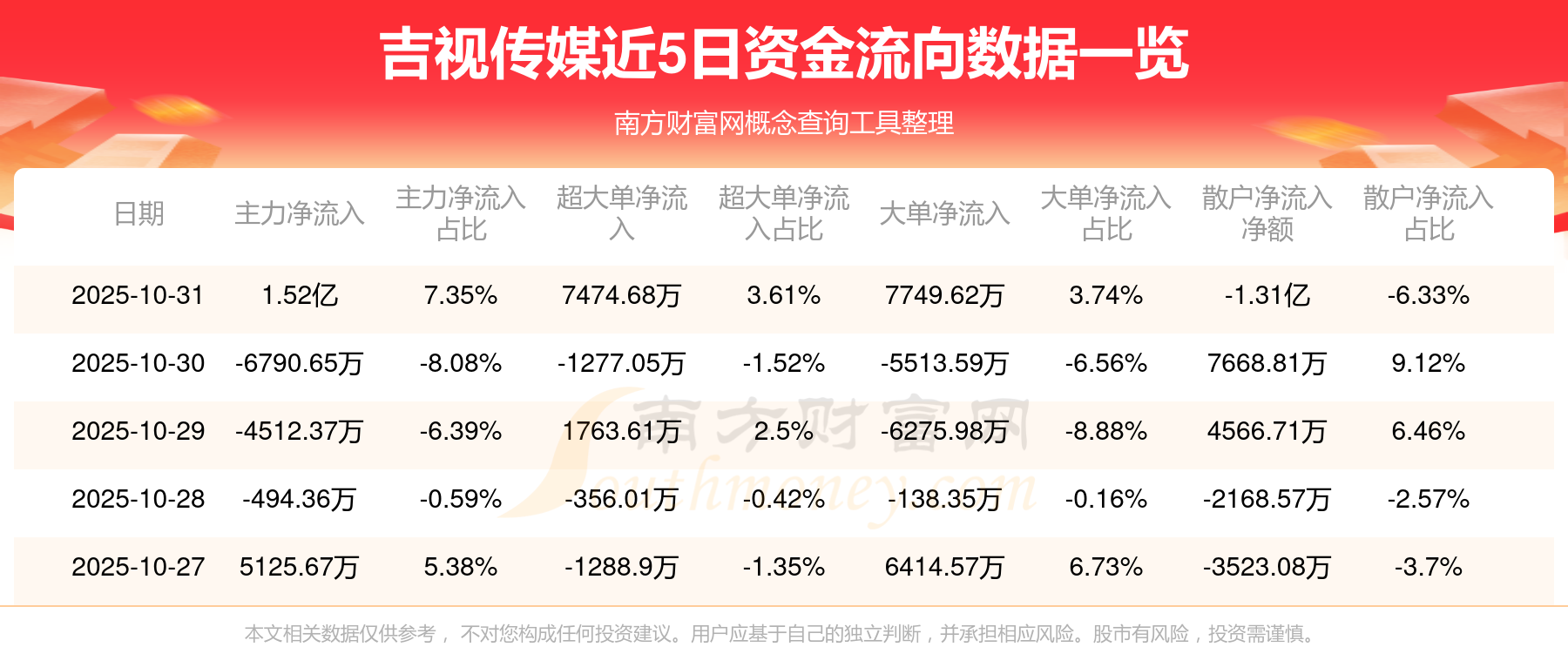 10月31日消息,吉视传媒资金净流入1.52亿元,超大单资金净流入7474.68万元,换手率16.02%,成交金额20.71亿元。