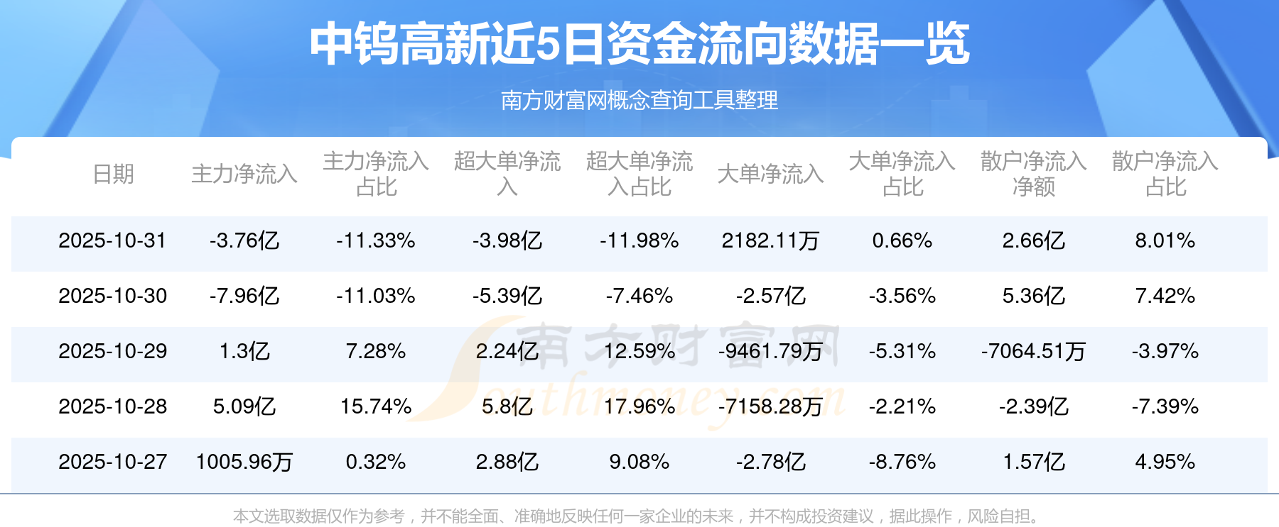 10月31日该股主力净流出3.76亿元,超大单净流出3.98亿元,大单净流入2182.11万元,中单净流入1.1亿元,散户净流入2.66亿元。