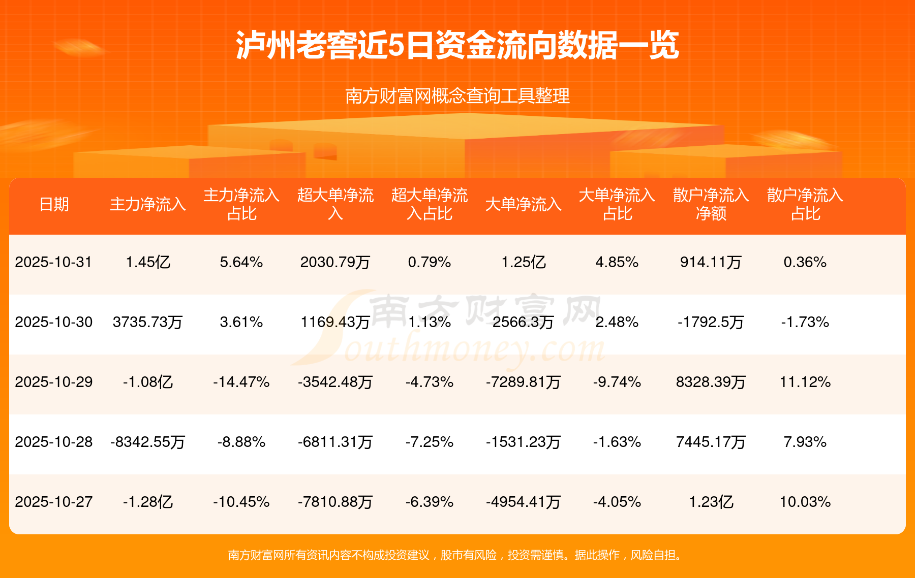 10月31日该股主力净流入1.45亿元,超大单净流入2030.79万元,大单净流入1.25亿元,中单净流出1.54亿元,散户净流入914.11万元。