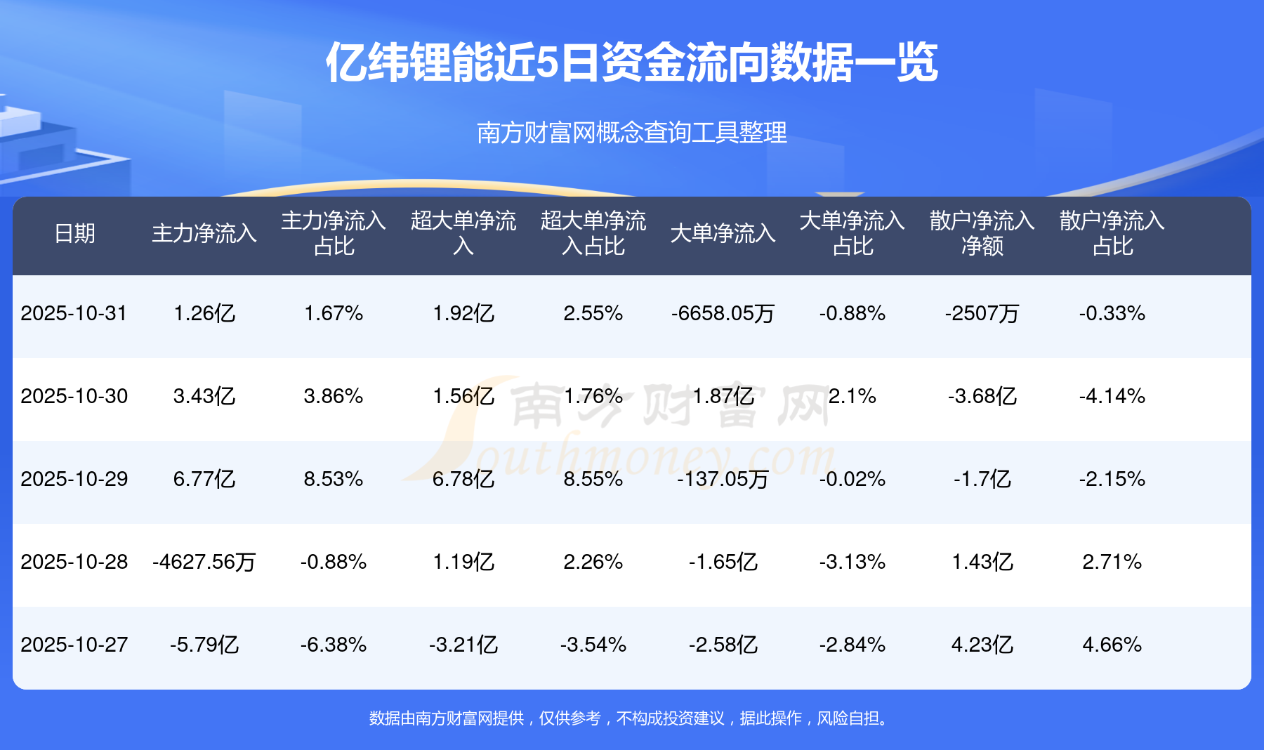 10月31日消息,资金净流入1.26亿元,超大单资金净流入1.92亿元,成交金额75.34亿元。