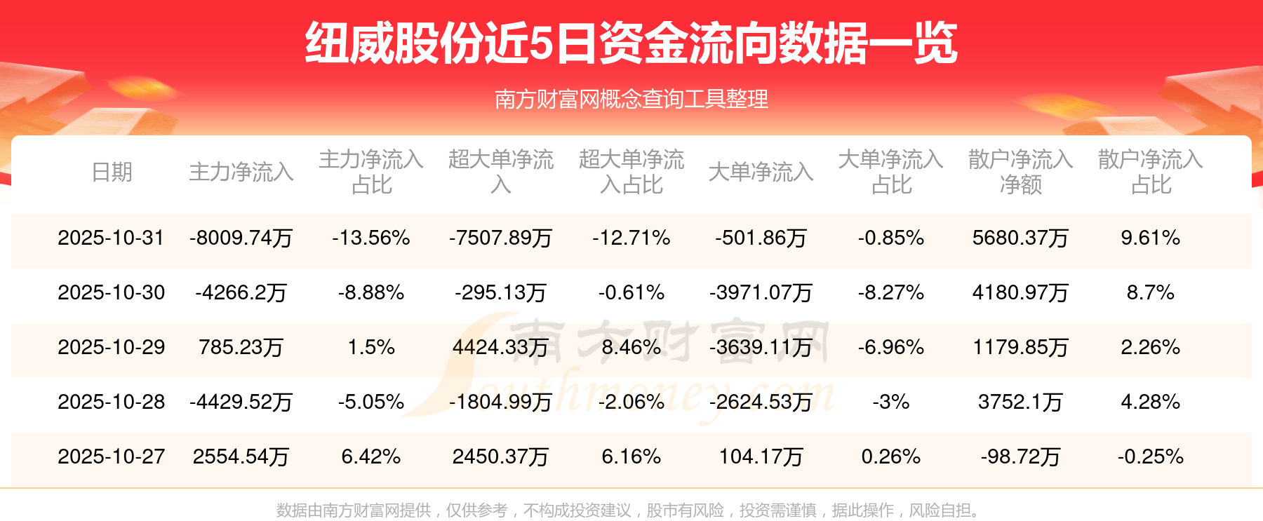 10月31日消息,纽威股份资金净流出8009.74万元,超大单资金净流出7507.89万元,换手率1.49%,成交金额5.91亿元。