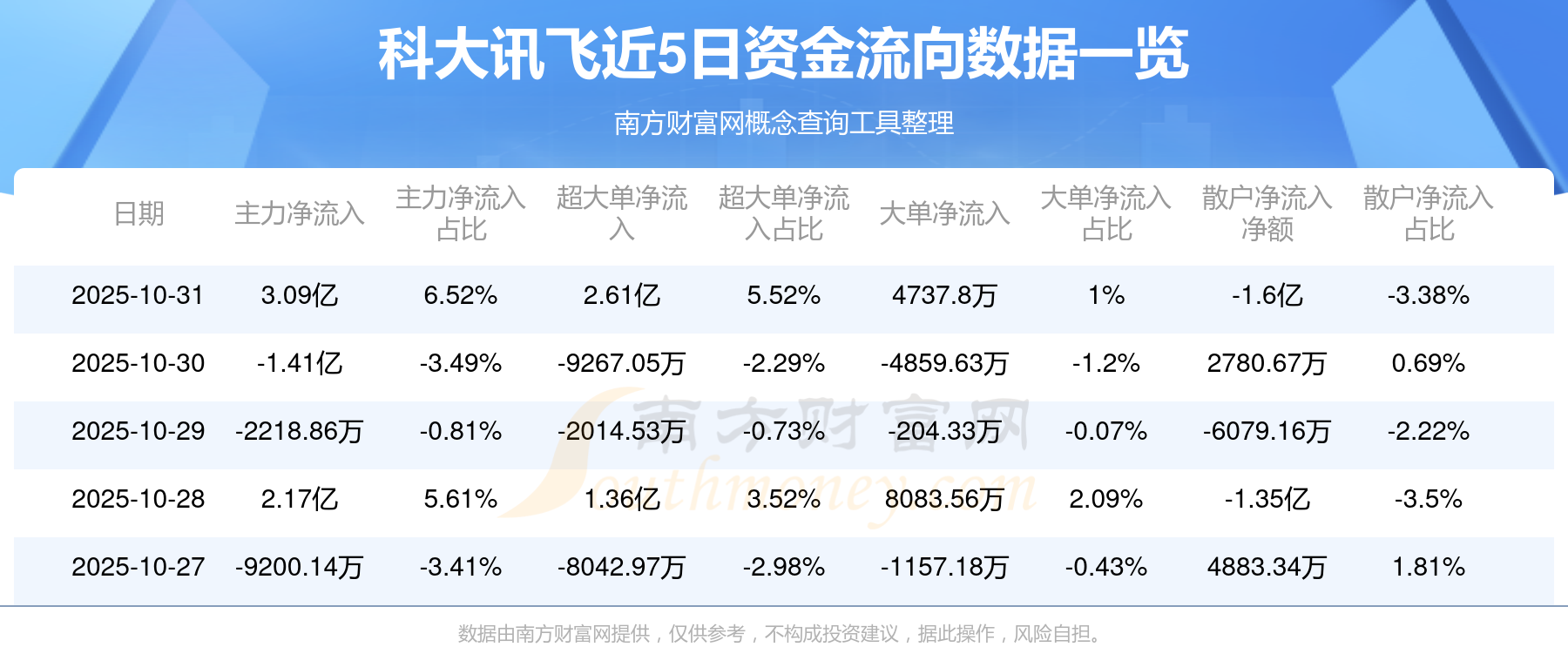 10月31日该股主力资金净流入3.09亿元,超大单资金净流入2.61亿元,大单资金净流入4737.8万元,中单资金净流出1.49亿元,散户资金净流出1.6亿元。