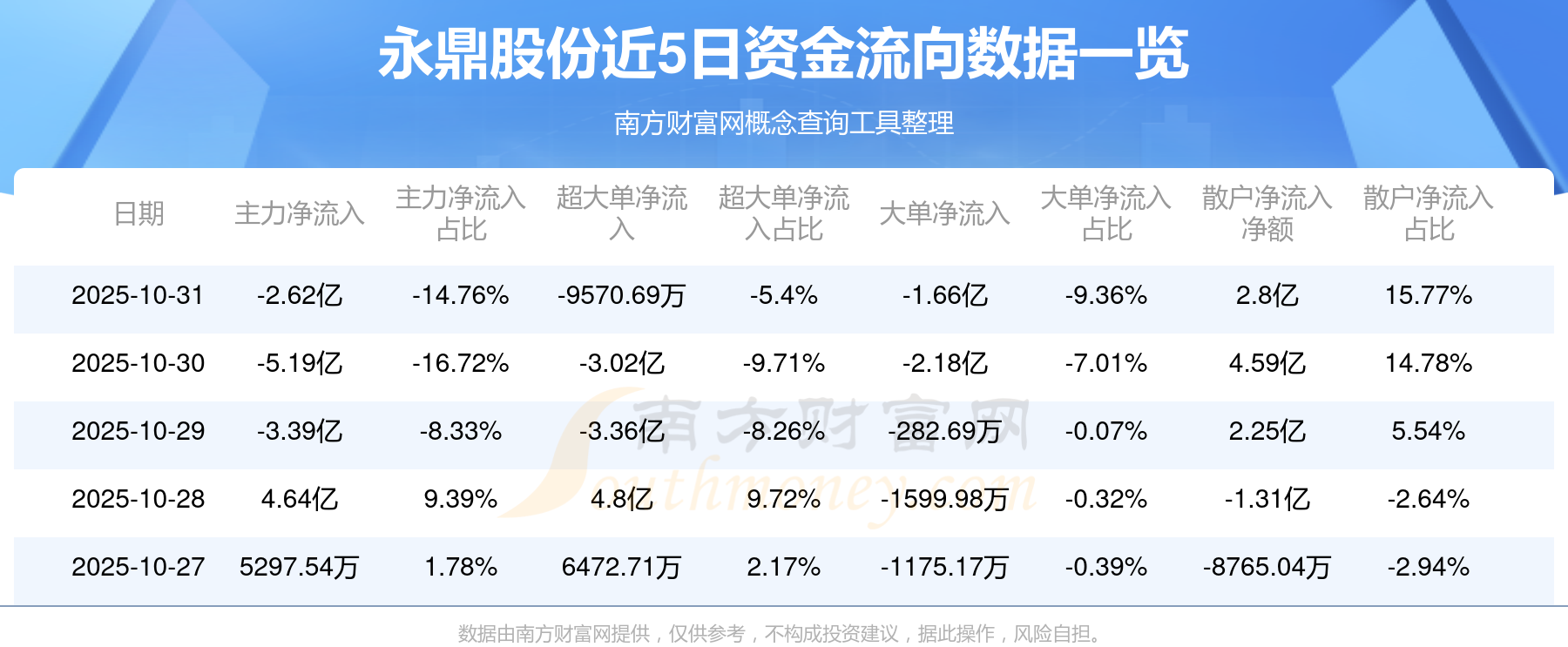 10月31日消息,永鼎股份10月31日主力净流出2.62亿元,超大单净流出9570.69万元,大单净流出1.66亿元,散户净流入2.8亿元。