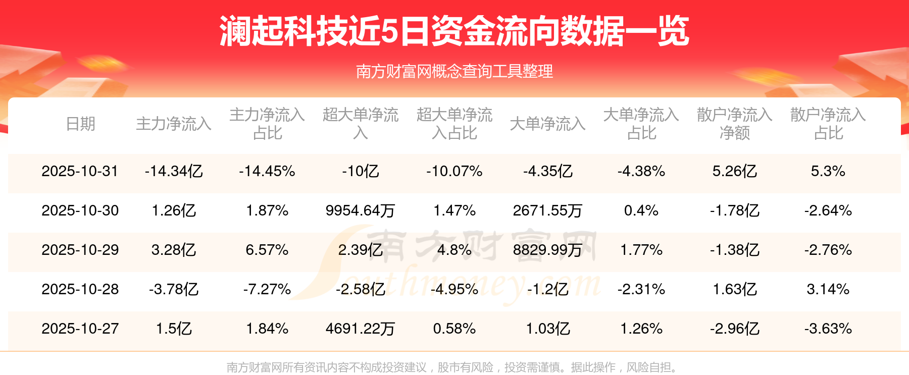 10月31日该股主力资金净流出14.34亿元,超大单资金净流出10亿元,大单资金净流出4.35亿元,中单资金净流入9.08亿元,散户资金净流入5.26亿元。