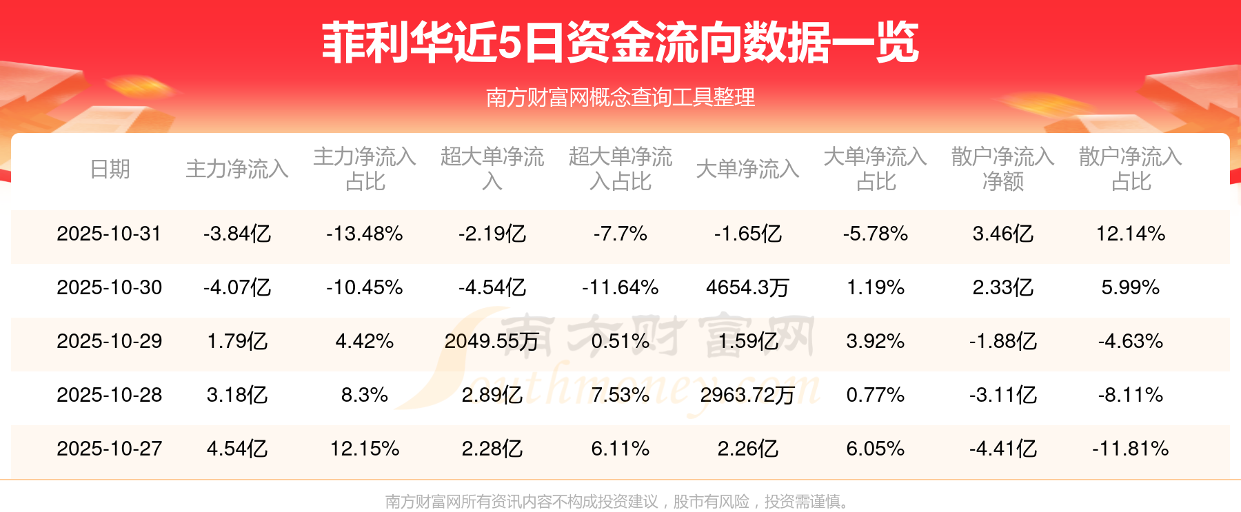 近5日资金流向一览见下表: