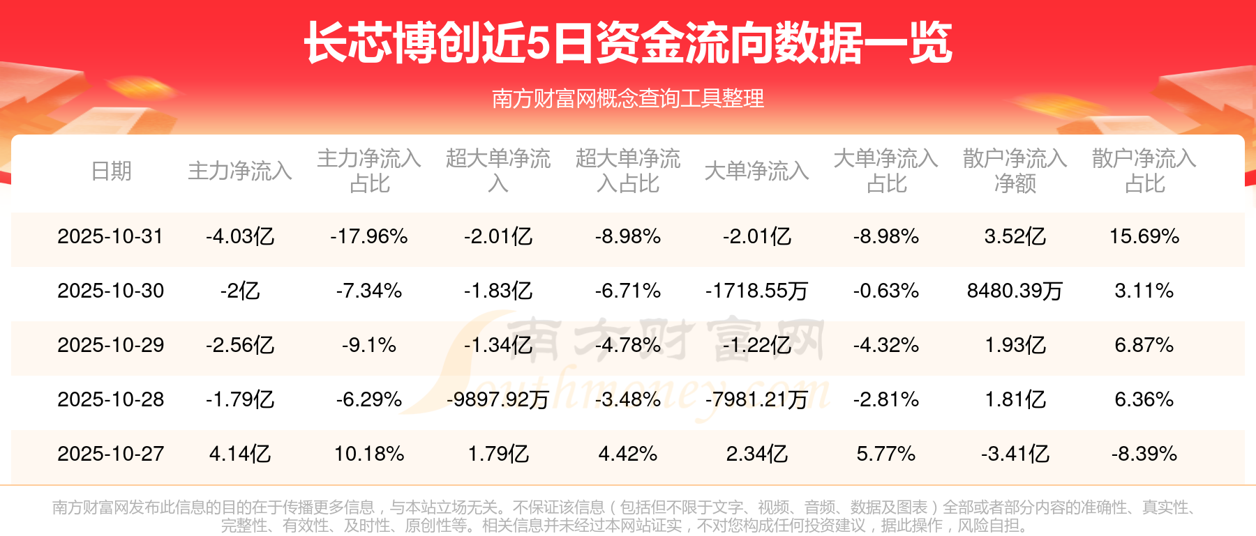 10月31日消息,长芯博创资金净流出4.03亿元,超大单资金净流出2.01亿元,换手率8.18%,成交金额22.42亿元。