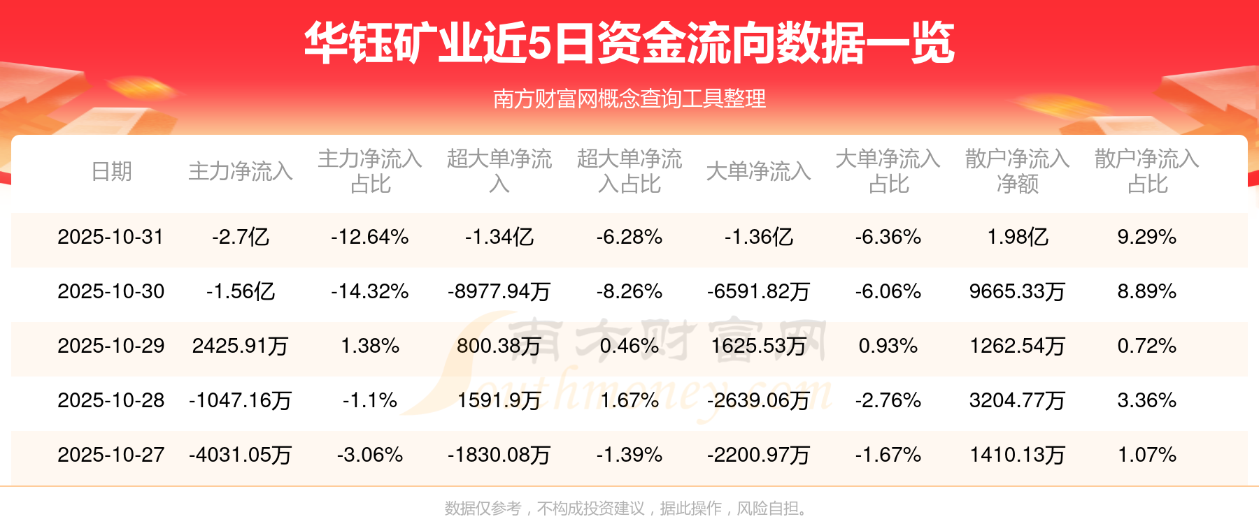 近5日资金流向一览见下表: