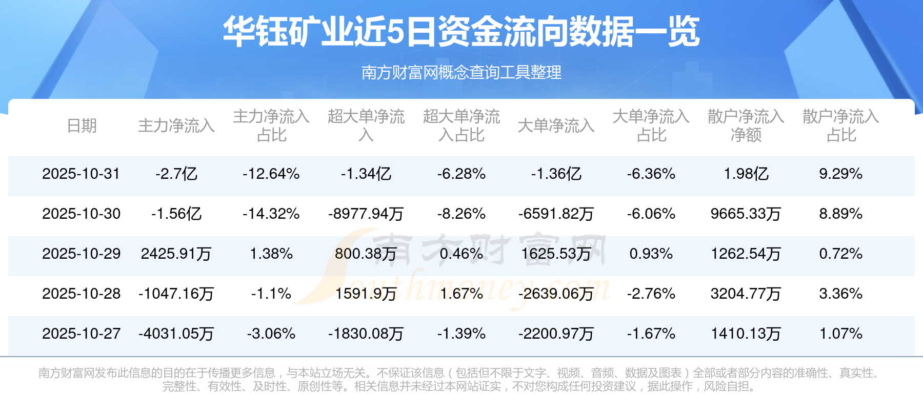 10月31日该股主力资金净流出2.7亿元,超大单资金净流出1.34亿元,大单资金净流出1.36亿元,中单资金净流入7135.92万元,散户资金净流入1.98亿元。