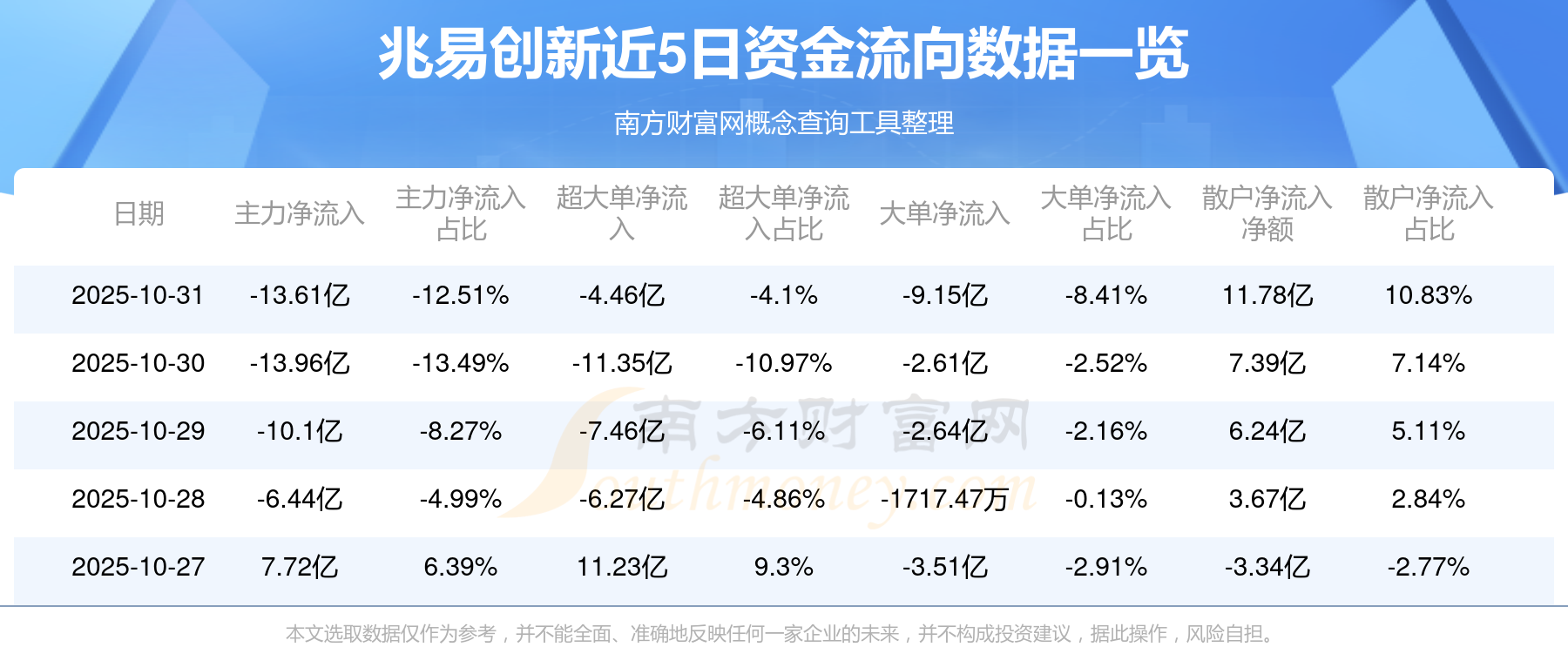 10月31日该股主力资金净流出13.61亿元,超大单资金净流出4.46亿元,大单资金净流出9.15亿元,中单资金净流入1.83亿元,散户资金净流入11.78亿元。