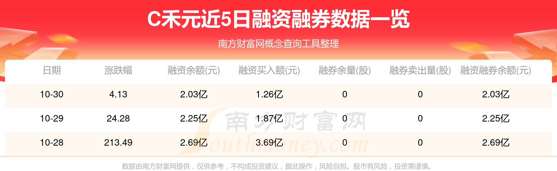 10月30日C禾元融券信息显示,融资方面,当日融资买入1.26亿元,融资偿还1.49亿元,融资净买额-2274.77万元。近5日融资融券数据一览见下表: