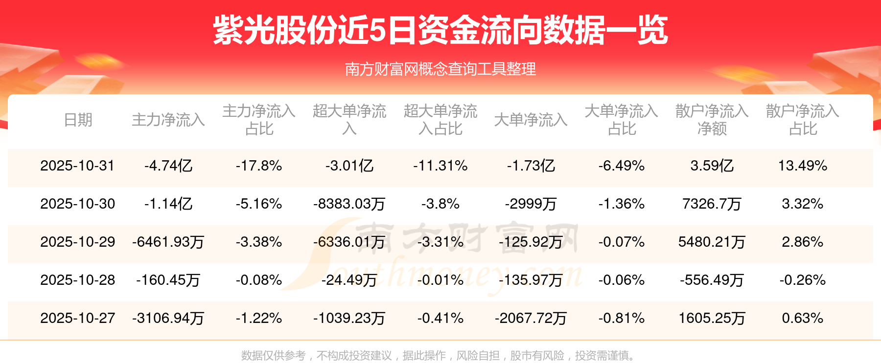 10月31日该股主力资金净流出4.74亿元,超大单资金净流出3.01亿元,大单资金净流出1.73亿元,中单资金净流入1.15亿元,散户资金净流入3.59亿元。