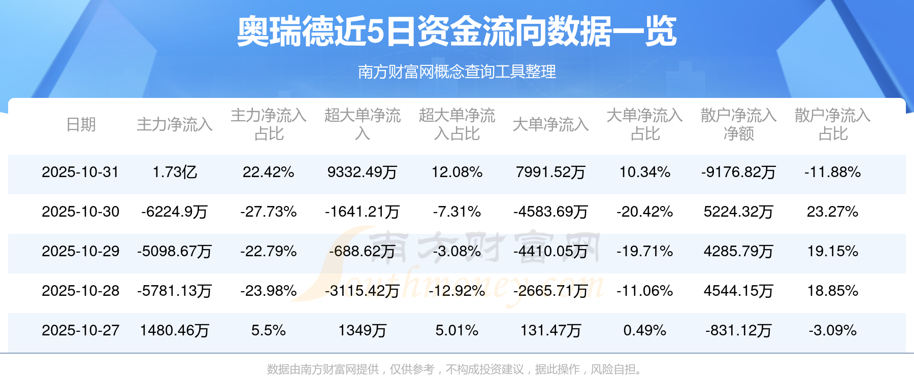 10月31日收盘消息,奥瑞德开盘报价3.42元,收盘于3.560元,成交额7.73亿元。