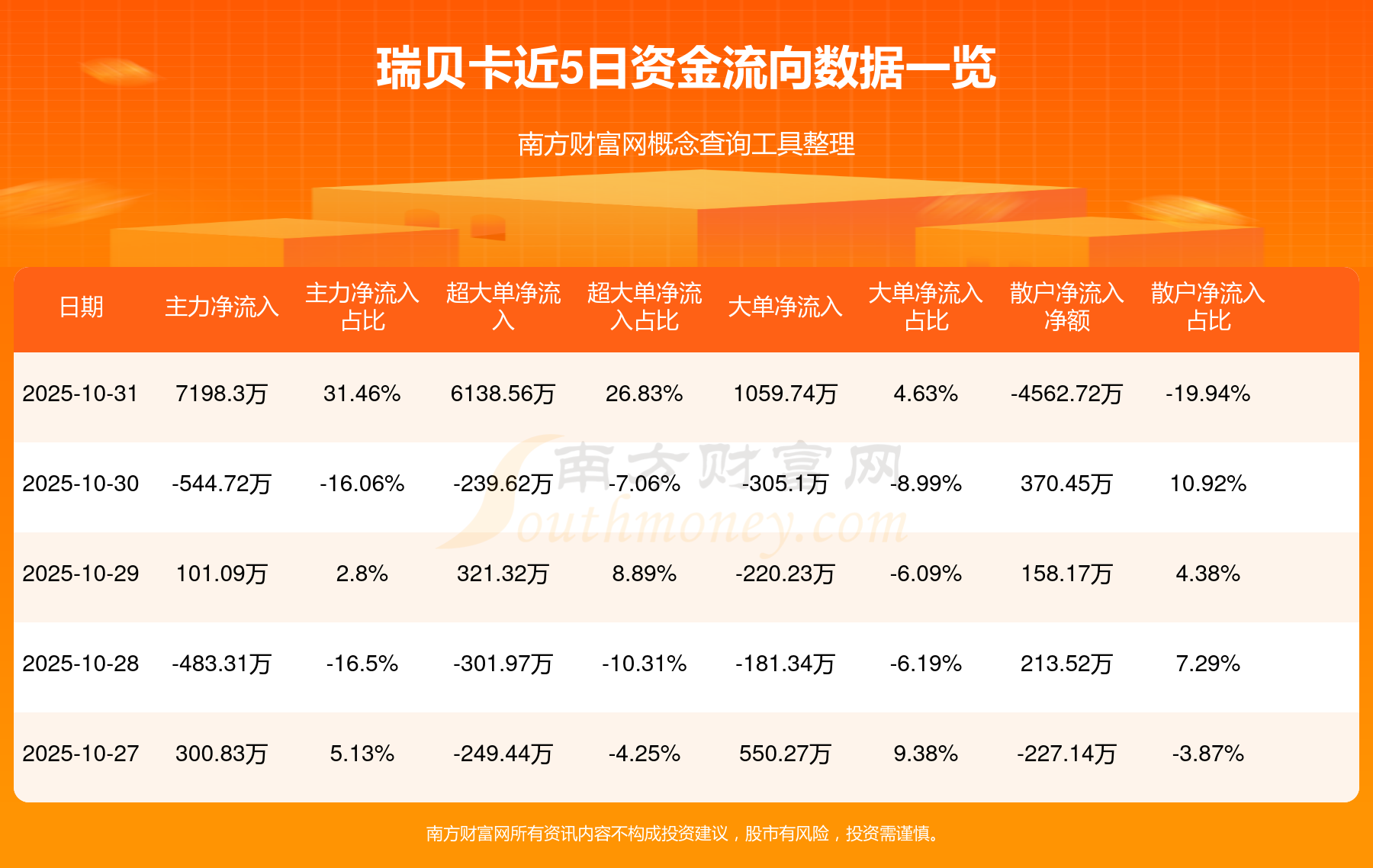 10月31日消息,资金净流入7198.3万元,超大单资金净流入6138.56万元,成交金额2.29亿元。
