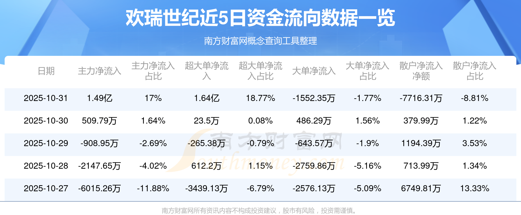 10月31日消息,欢瑞世纪资金净流入1.49亿元,超大单资金净流入1.64亿元,换手率17.47%,成交金额8.76亿元。