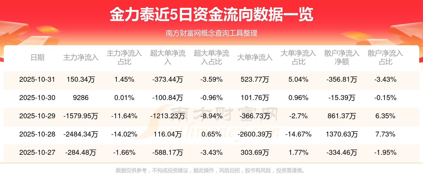 10月31日消息,ST金泰资金净流入150.34万元,超大单净流出373.44万元,换手率3.43%,成交金额1.04亿元。