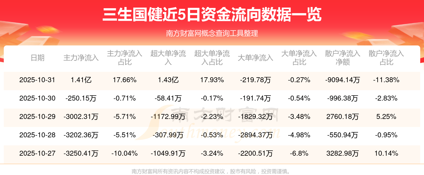 10月31日该股主力净流入1.41亿元,超大单净流入1.43亿元,大单净流出219.78万元,中单净流出5016.15万元,散户净流出9094.14万元。