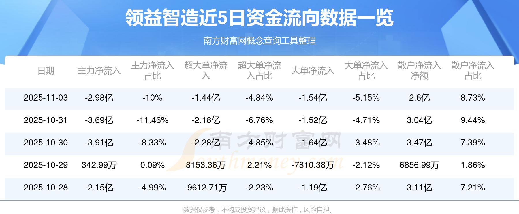 11月3日消息,领益智造资金净流出2.98亿元,超大单资金净流出1.44亿元,换手率2.75%,成交金额29.81亿元。