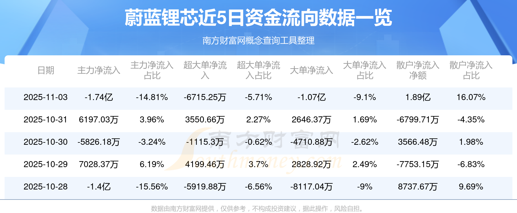 资金流向数据方面,11月3日主力资金净流流出1.74亿元,超大单资金净流出6715.25万元,大单资金净流出1.07亿元,散户资金净流入1.89亿元。