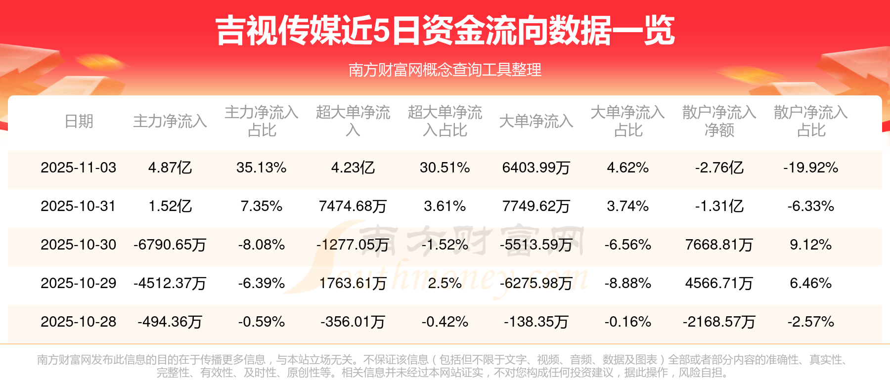 11月3日该股主力净流入4.87亿元,超大单净流入4.23亿元,大单净流入6403.99万元,中单净流出2.11亿元,散户净流出2.76亿元。